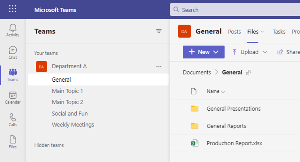 - Use channels for each specific topic within the Department in order to store the working documents relevant to the specific topic.